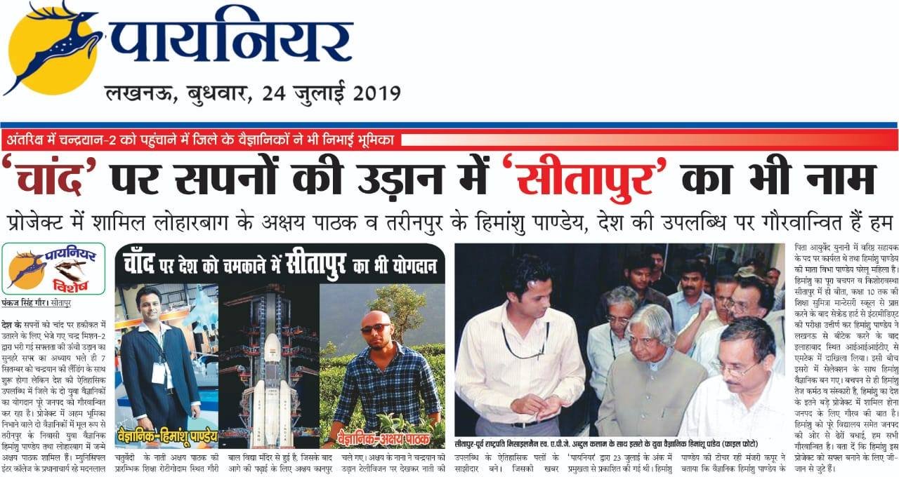 Himanshu Pandey, a proud alumnus of Sumitra Montessori School, who has invaluable contribution towards the Chandrayaan-2 mission recently launched to the Moon on 22 July 2019.